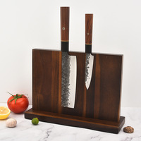 Estante magnético de doble cara para cuchillos de madera maciza de acacia, herramienta de almacenamiento de cocina y bolsa de bloque y Rollo de pino